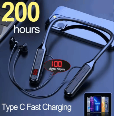 سماعات أذن لاسلكية 5.3 مقاومة للماء، سماعات أذن مغناطيسية بشريط حول الرقبة، شاشة LED للألعاب، سماعة رأس رياضية ستيريو